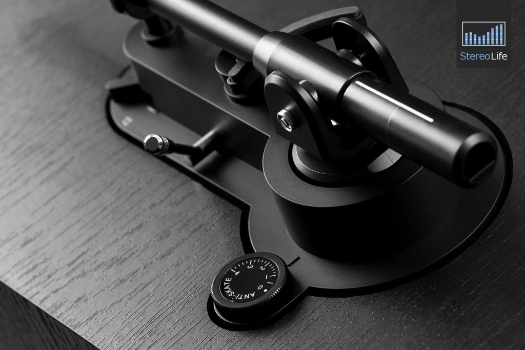 El brazo Twin-Gimbal ajustable permite regular fuerza de seguimiento y antiskating, facilitando la personalización y el uso de distintas cápsulas a futuro.