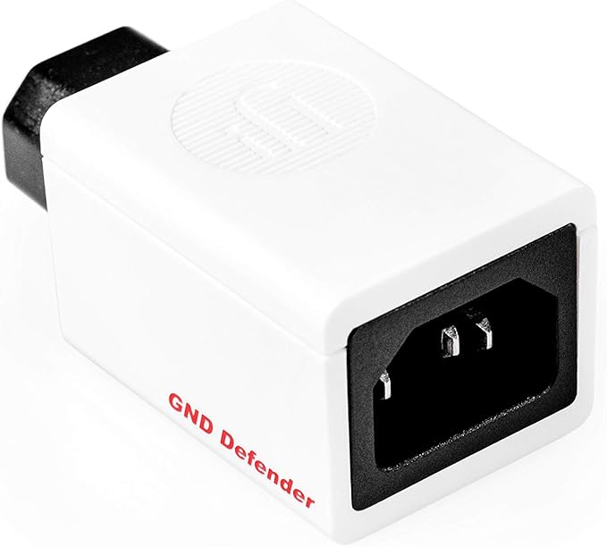 Los bucles de tierra se producen cuando varios dispositivos están conectados a diferentes puntos de masa, creando caminos múltiples de retorno que generan ruido audible. El GND Defender se inserta entre el cable de alimentación y el equipo, detectando y desconectando automáticamente el lazo únicamente en el componente afectado.