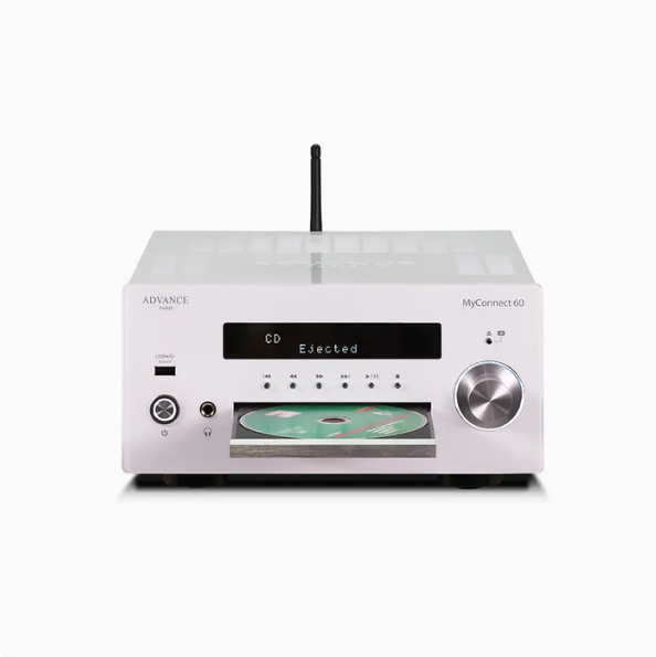 Sistema Hi-Fi compacto todo-en-uno Advance Paris que combina amplificación Clase AB, conectividad en red y fuentes físicas en un único núcleo musical, con carácter sonoro francés.